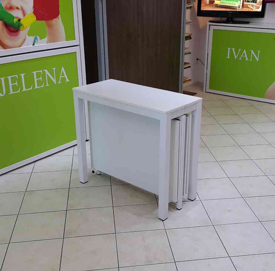Svojim prilagodljivim merama može poslužiti za sve namene: kao konzola u predsoblju, kao radni sto, trpezarijski, za slave, rođendane i sva druga okupljanja.