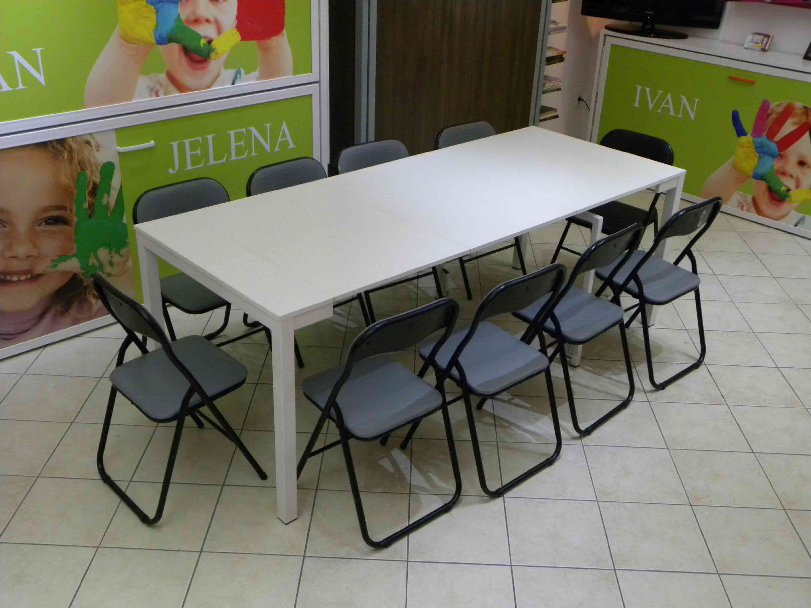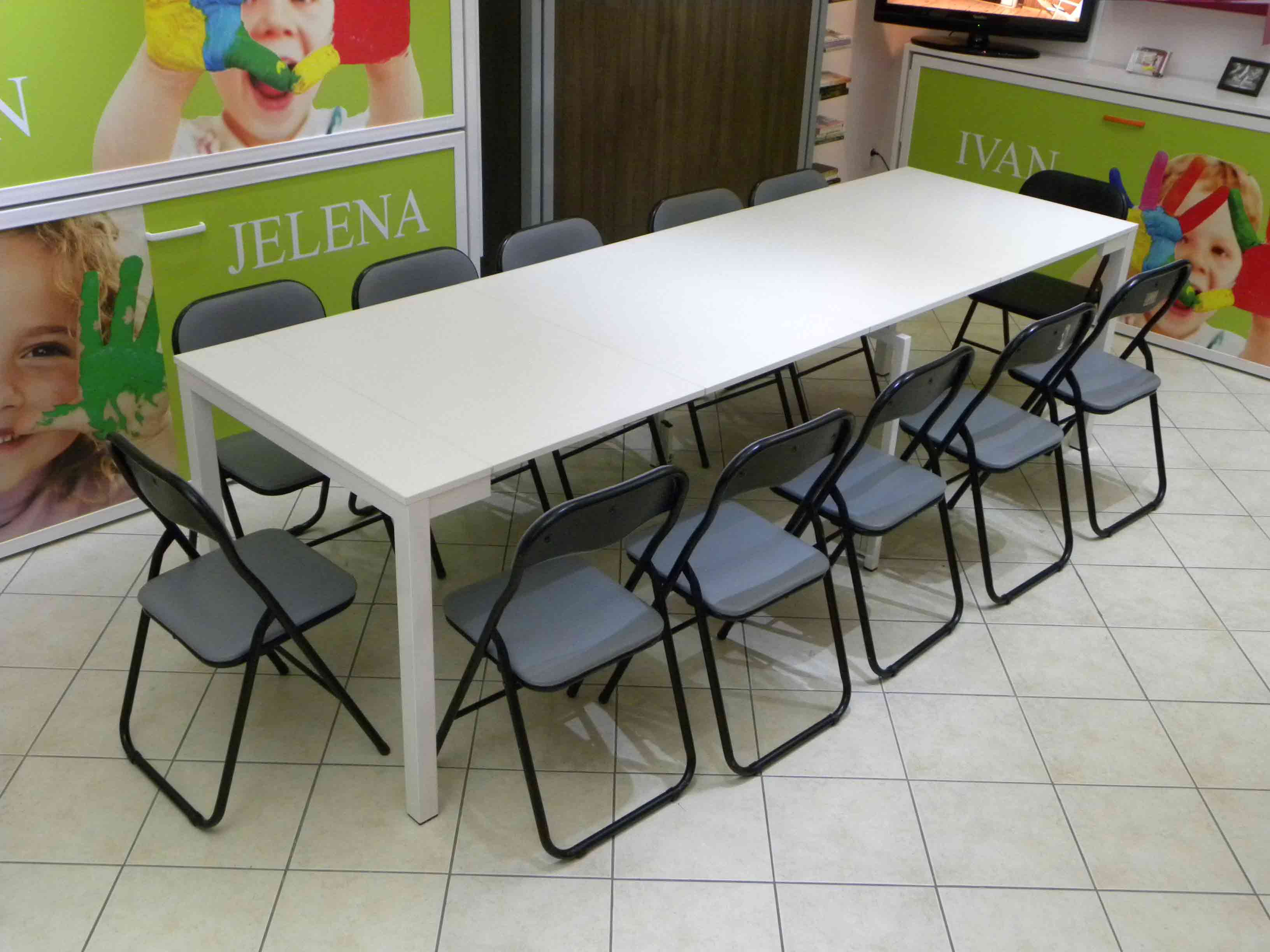 U hotelima, školama i obdaništima, poslovnim prostorima, sa svojom promenljivom i prilagodljivom dužinom od 40cm do 4,1m, može služiti za sedenje većeg broja ljudi, promocije, obuke, prezentacije ili služenje hrane.