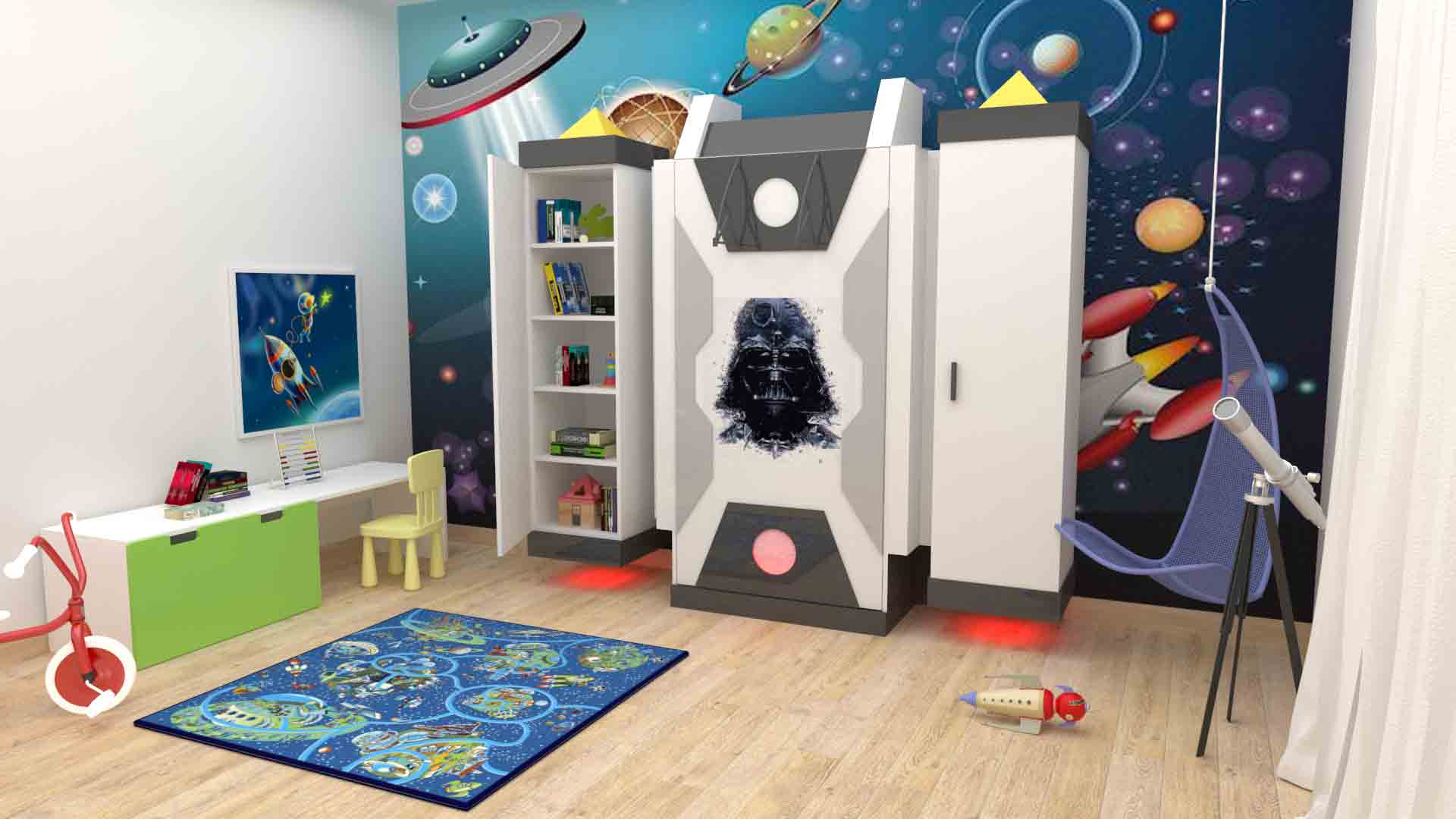 Other elements in the room can be customized to work (shelves, tables, chests of drawers, cupboards and closets).