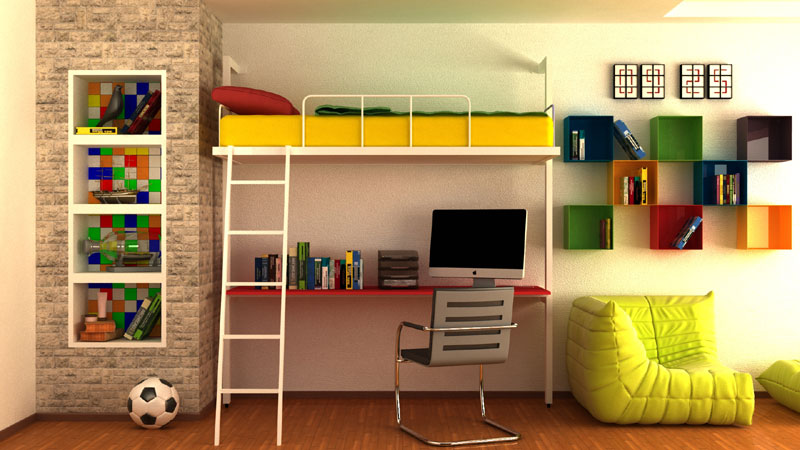 Otvorena polica iznad horizontalnog zidnog kreveta